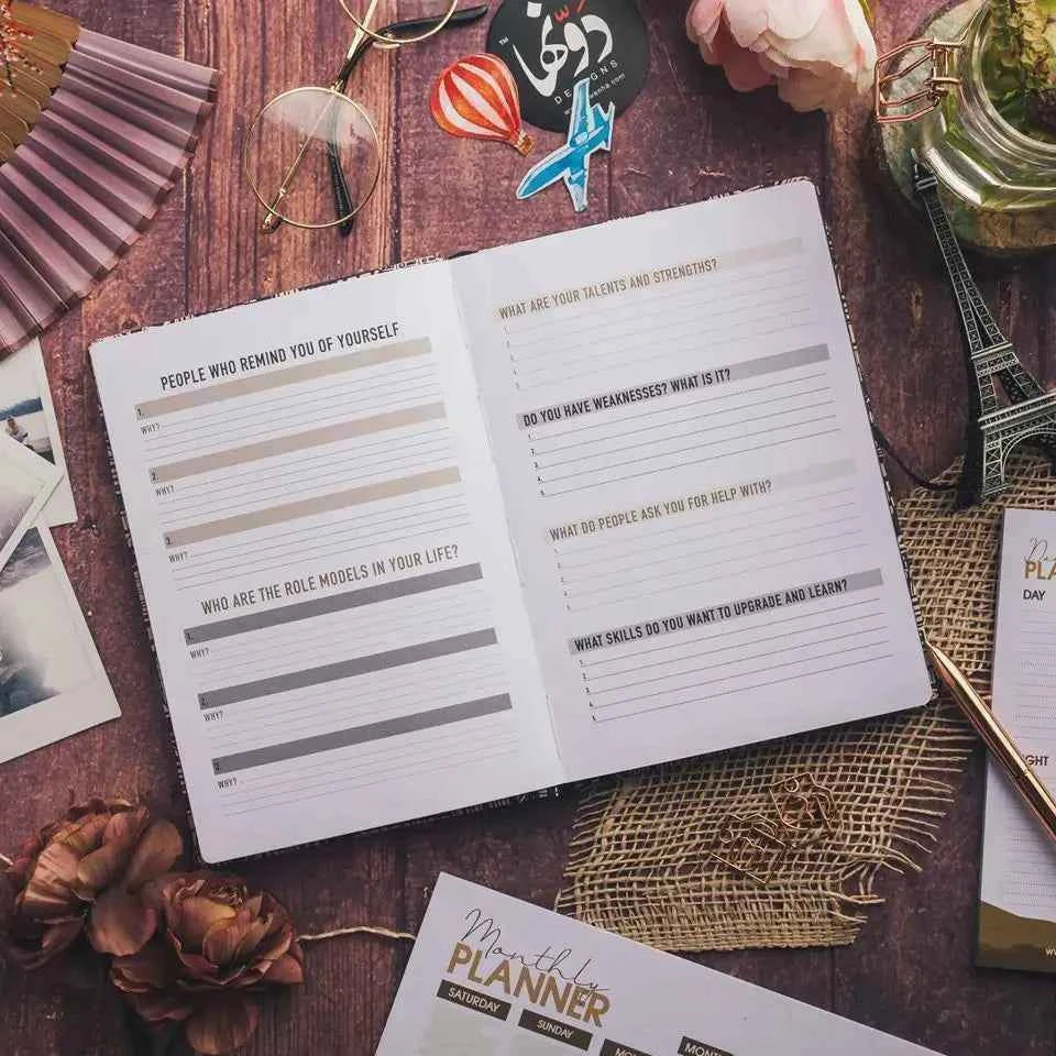 تم تصميم هذه المفكرة عشان تساعدك تعيش بسعادة أكبر وتحقق أهدافك: