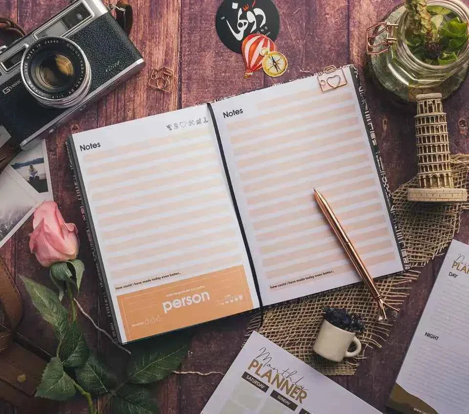 تم تصميم هذه المفكرة لمساعدتك على تنمية السعادة وتحقيق أهدافك: