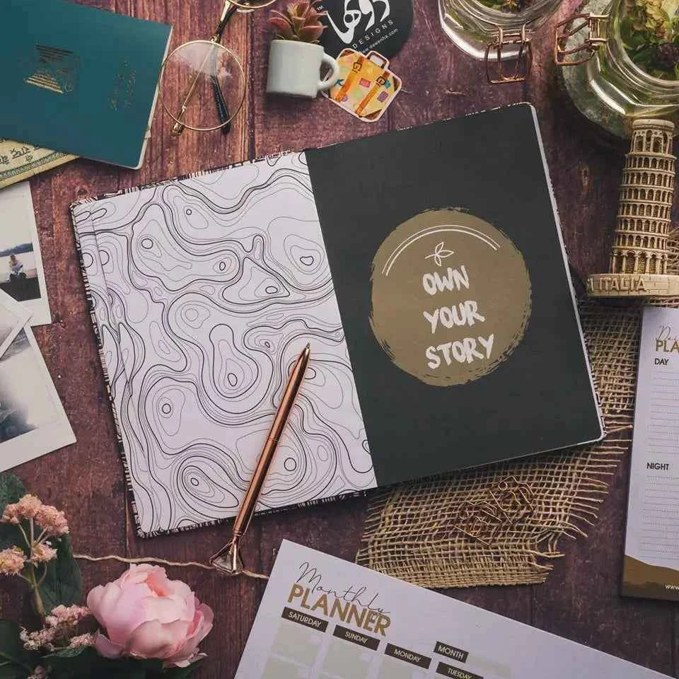 ومساحة واسعة تكتب فيها ملاحظاتك، تجاربك، وذكرياتك خلال الرحلة.